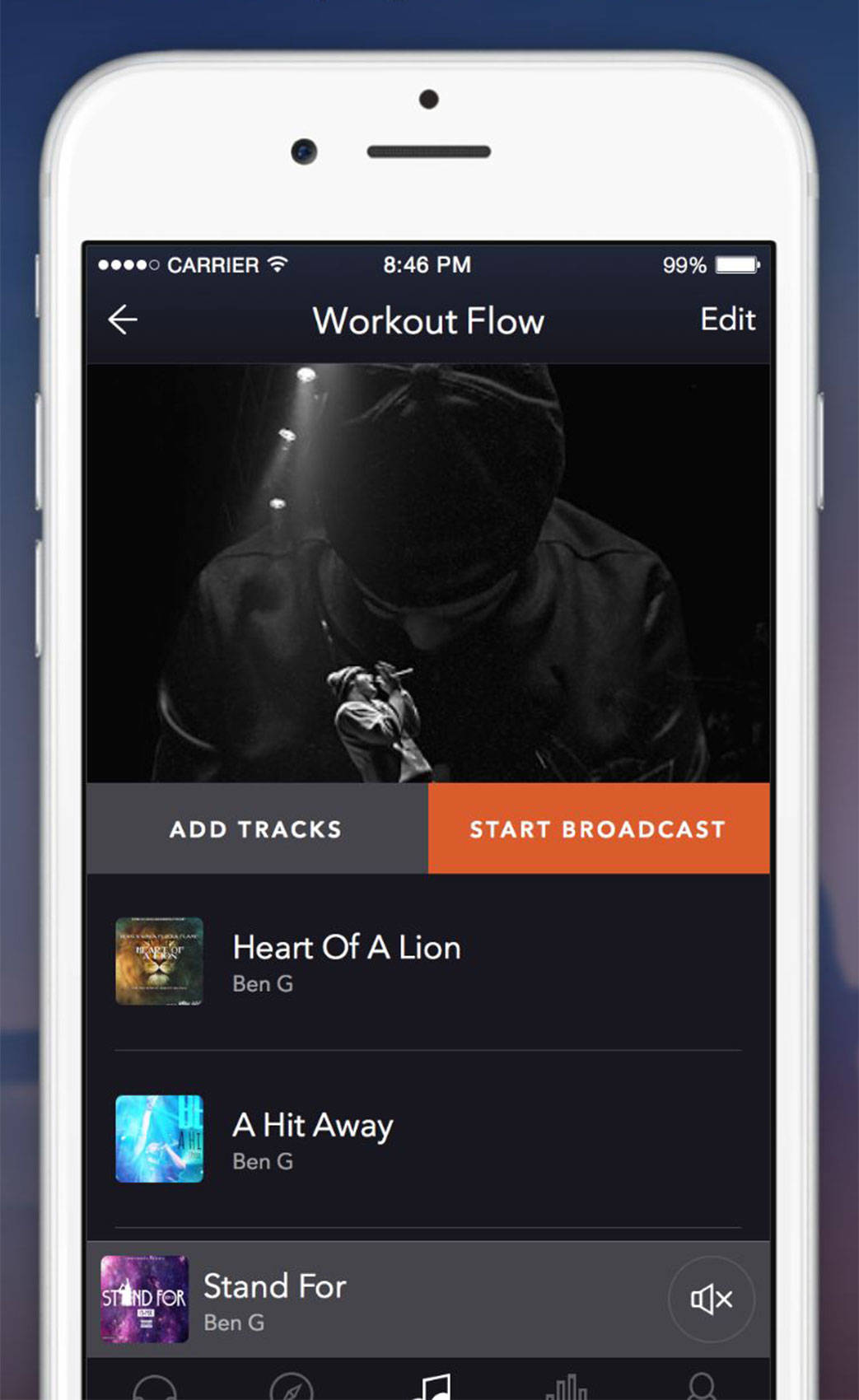 You can follow friends, idols and popular broadcasters and copy their playlists. You can receive feedback for your songs with Fire, which is the Geekin version of a Like symbol. You can share Broadcasts, which is what Geekin calls playlists, via Twitter or text and use in-app messaging for live conversations, which disappear when a Broadcast ends.