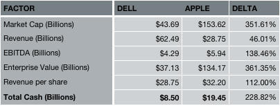 That’s just staggering. Dell’s claim to fame is efficiency, yet while having twice the revenue as Apple, Dell still under performs in every other KPI.