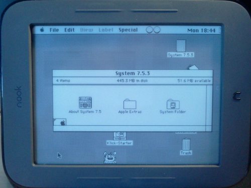 Then in February of this year, he found hope in a comment on an obscure hacker forum on the 68K Macintosh Liberation Army website. Apparently, someone had done it! Forum member Juror22 had posted that he’d gotten the classic MacOS, originally hacked for Android, running on a rooted Nook Simple Touch. Much rejoicing ensued, but Mike wanted proof.
