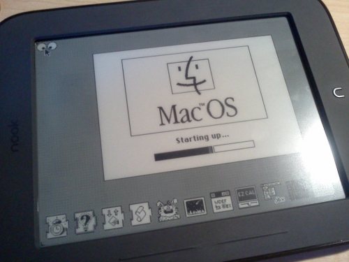 Some people dream of flying sheep, but blogger Mike Cane thinks different, dreaming of flying toasters. His dream – in November 2011 – was to see the classic Macintosh OS running on a nook Simple Touch, the eInk reader from Barnes and Noble. His dream seemed far-fetched, perhaps, even to him, but consider the following specs: