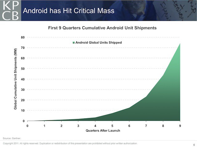 The slides are from a presentation by Meeker and her Kleiner Perkins partner Matt Murphy at Google’s thinkmobile conference. The complete slideshow is embedded below.