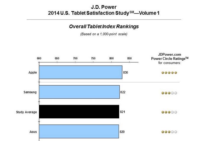 Samsung knocked the iPad off the top post last year, but after surveying 2,513 tablet owners Apple came out on top in 2014 with a score of 830, dominating in every category except cheapness.