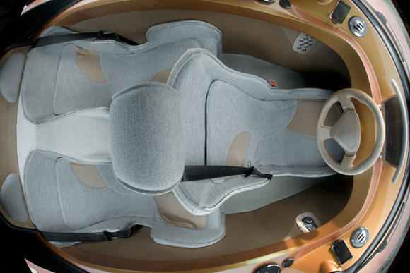 But the name iChange isn’t limited to the iPhone ignition. The car also adapts to the number of passengers: “In seconds a streamlined one-seater sports car transforms into a comfortable car with ample room for three. The trick: At the push of a button, the rear end of the teardrop-shaped car magically pops up.”