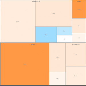 Image: Asymco.comAsymco analyst Horace Dediu produced two charts showing that although the iPhone-maker has just 5 percent of the global smartphone market, Apple raked in 55 percent of the global profits in the first quarter. In terms of profitability, cell phone makers such as LG, Sony Ericsson and Motorola nearly vanish in terms of profitability. Most telling is when the analyst illustrates the profitability differences in “diversified” companies making both smart and feature phones and those firms producing only smartphones.