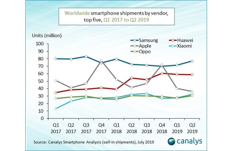 There was a time Apple was the world’s second-largest phone maker, but Huawei has surpassed it. The Chinese company shipped 54.2 million handsets during Q2 according to Counterpoint, while both IDC and Canalys peg the figure at 58.7 million. That’s a 4.6% to 8.3% rise, depending on which market-analysis firm you ask.