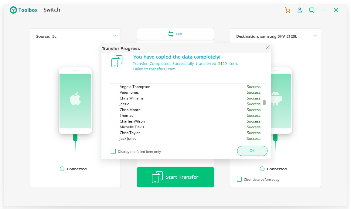That’s all there is to it, regardless of the make or model of either device. For mobile transfer, it doesn’t get any easier. Additionally, iSkysoft Toolbox – Switch provides powerful tools for unlocking, repairing and recovering your phone, along with the ability to erase and back up files.