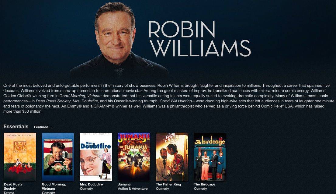 Along with highlighting Williams’ incredible career that included an Oscar for his performance in Good Will Hunting, the iTunes section highlights Robin’s philanthropic work with Comic Relief USA that raised $50 million for charity.