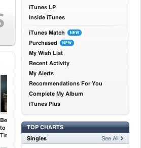 New sidebar links in the iTunes Store have appeared for many international customers above the top charts section of the store homepage. Customers can signup for iTunes Match there with their Apple IDs and have their library scanned and matched in the cloud.