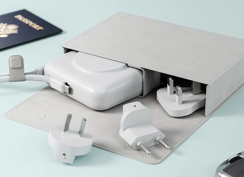 In the box, you get Axie, a USB-C cable, a dedicated travel bag and international plugs that work in more than 150 countries. And Axie’s USB-C cable magnetically clips on the product for easy cable management.