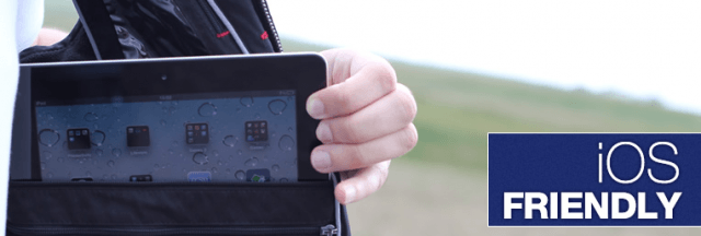 The compartments reserved for iDevices feature “finger friendly” covers that allow the wearer to use the iPhone or iPod touch while still inside the jacket.