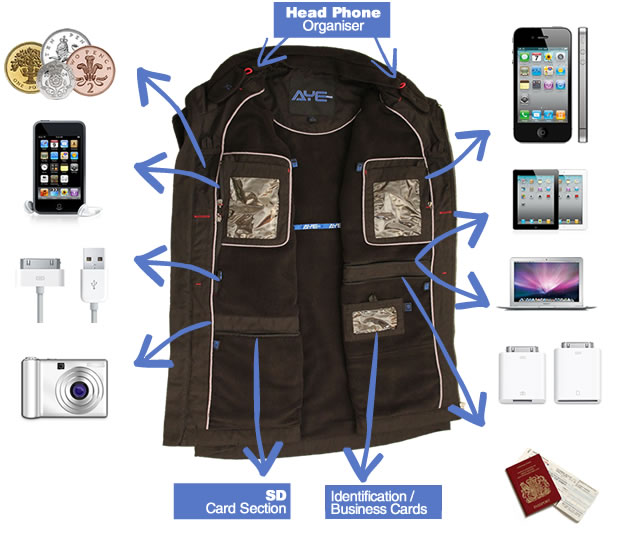 Wouldn’t it be nice to have a jacket that lets you store your iPhone, iPad, sync cables, and maybe even a MacBook Air? The folks at AyeGear think so.