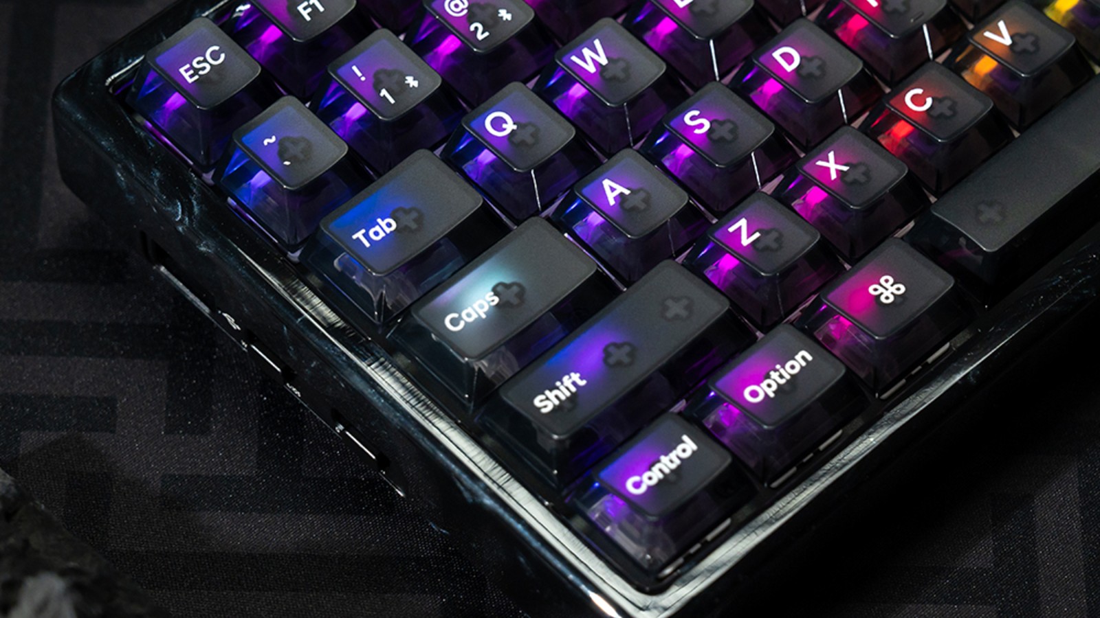 This Keychron K2 HE special edition features a body/housing made of black resin with interesting highlights. The 75% layout keeb also sports Hall Effect magnetic switches and backlighting.