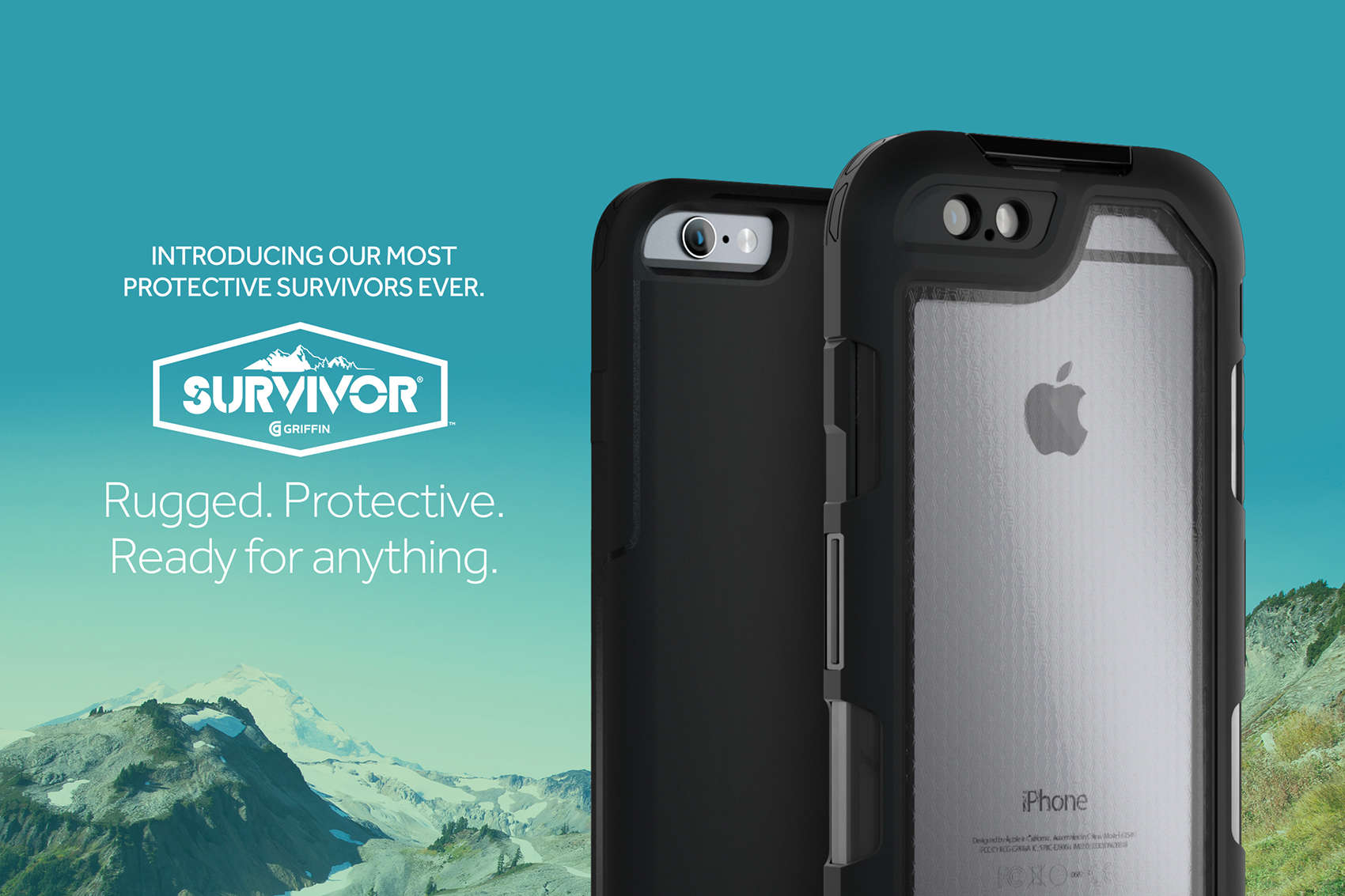 Griffin Technology’s Survivor line promises to deliver rugged protection in all kinds of situations. The Summit can withstand a 10-foot drop and offers rain, sand and dust protection. The Journey is simple snap-on rigid shell with a drop protection rating of just over six feet. The All-Terrain, said to take military-grade abuse.