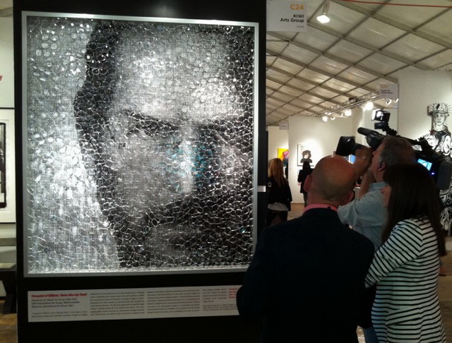 Artist David Datuna created a striking portrait of Steve Jobs titled “Viewpoint of Millions.” Shown at the recent international art fair Scope Miami, it became one of the most expensive art pieces sold at the fair, fetching $210,000.