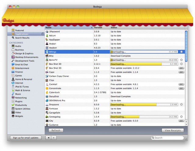 Cydia creator Jay Freeman told Cult of Mac that “Bodega’s existence is the reason why you won’t see me bother releasing a Cydia for Mac.” Why? Because Freeman is concerned with a fundamental change in the way software is written for the Mac, not merely packaging existing apps and displaying them in a store. “The interesting challenge is not “distribute applications,” said Freeman. “There’s already a perfectly reasonable and well-worn way to do that: Bodega.”