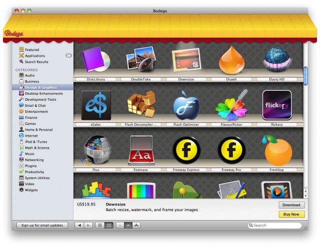 Bodega was around long before the Mac App Store. Freshcode launched the app’s beta in March of 2010. Apple didn’t release the Mac App Store until nearly a year later. “There was no Mac App Store at the time, and we just wanted there to be an ‘app store’ period,” said Poirier. “Most of the apps we added two years ago are still there, which is a good sign.”