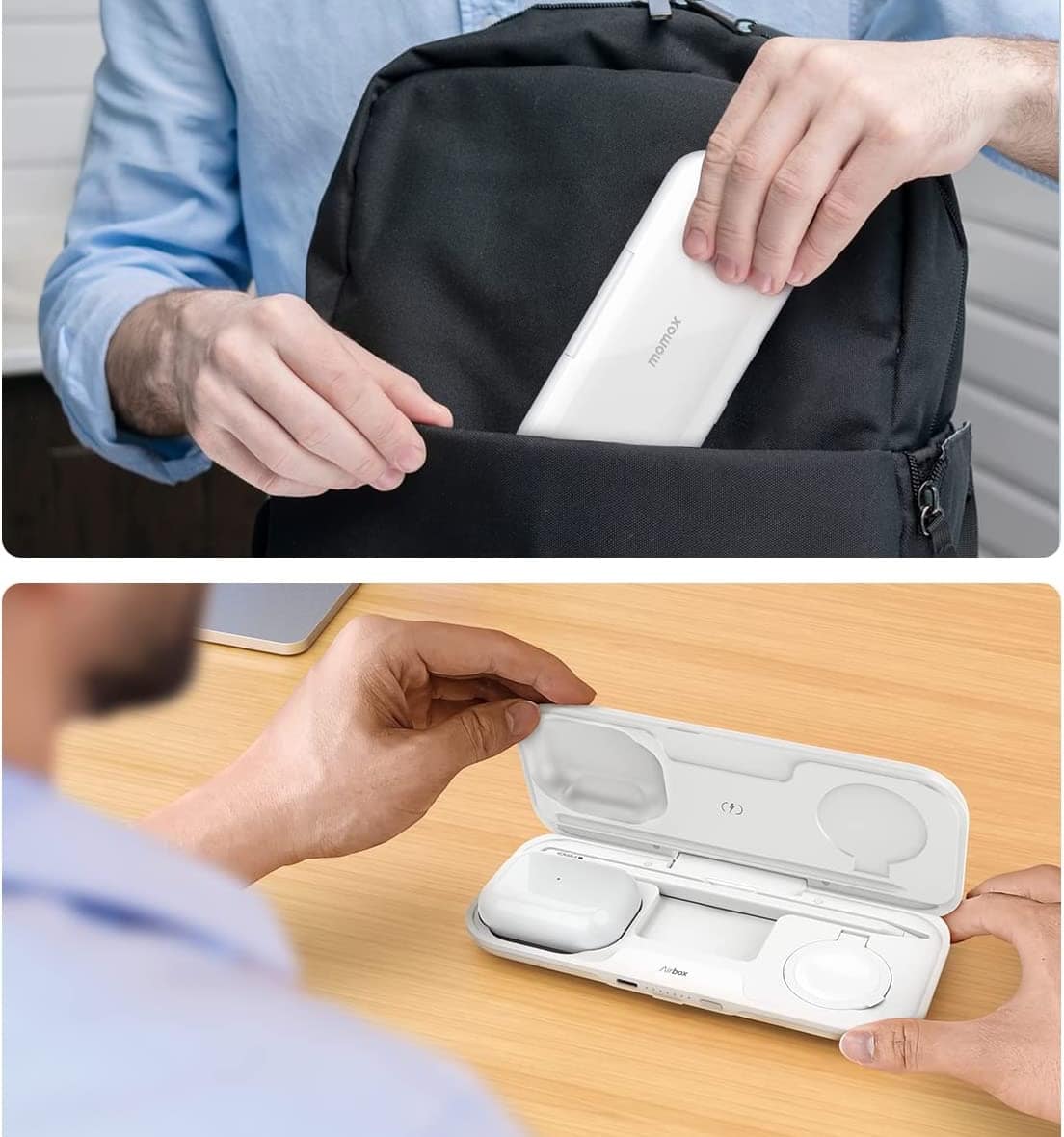 Because the Momax Airbox combines a multi-device carrying case with a powerful battery, it’s different from ordinary power banks or wireless charging stations you plug in with a cable.