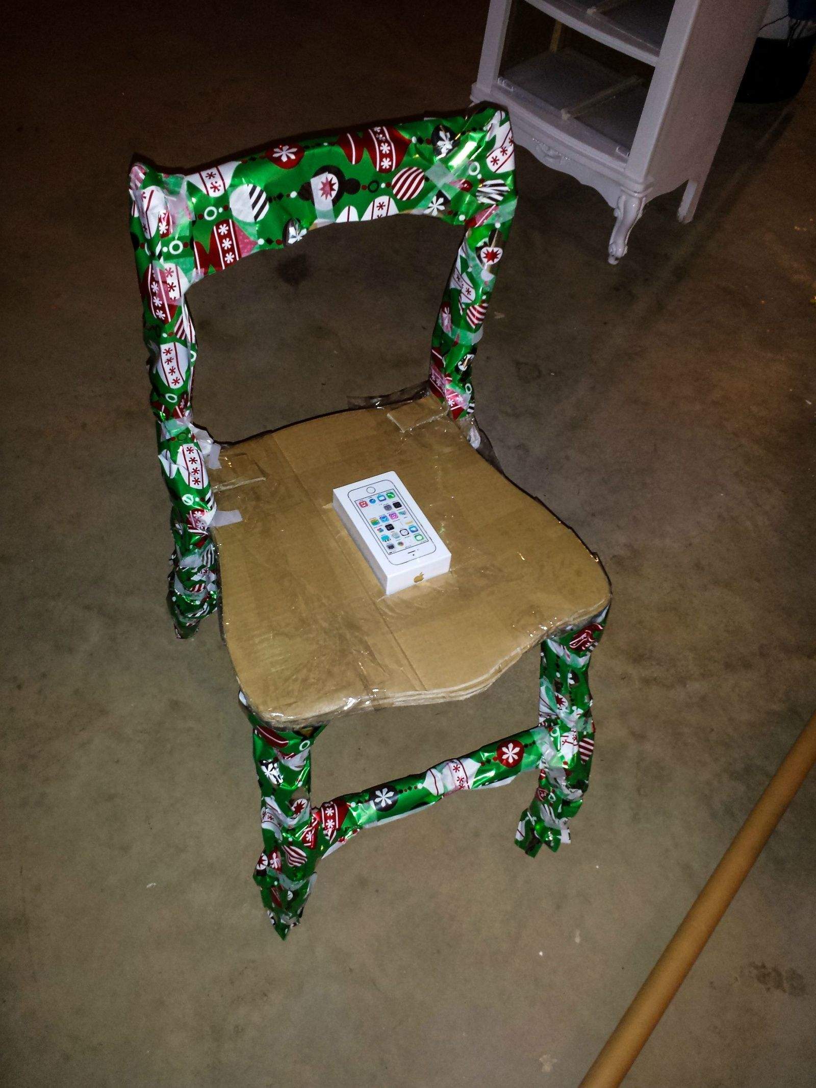 Many of us got or received iPhones for Christmas, and I’m guessing you thought you were pretty smart, putting it in a gift bag to disguise the telltale shape. But you’ve got nothing on this guy, who fooled someone into thinking that the iPhone they were actually unwrapping was just a crappy old chair. Check out how they did it, after the jump.