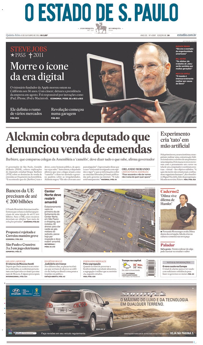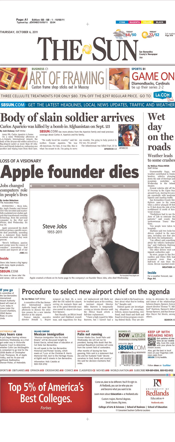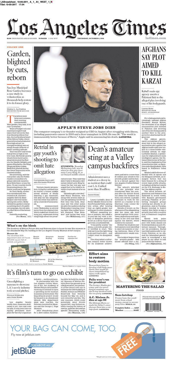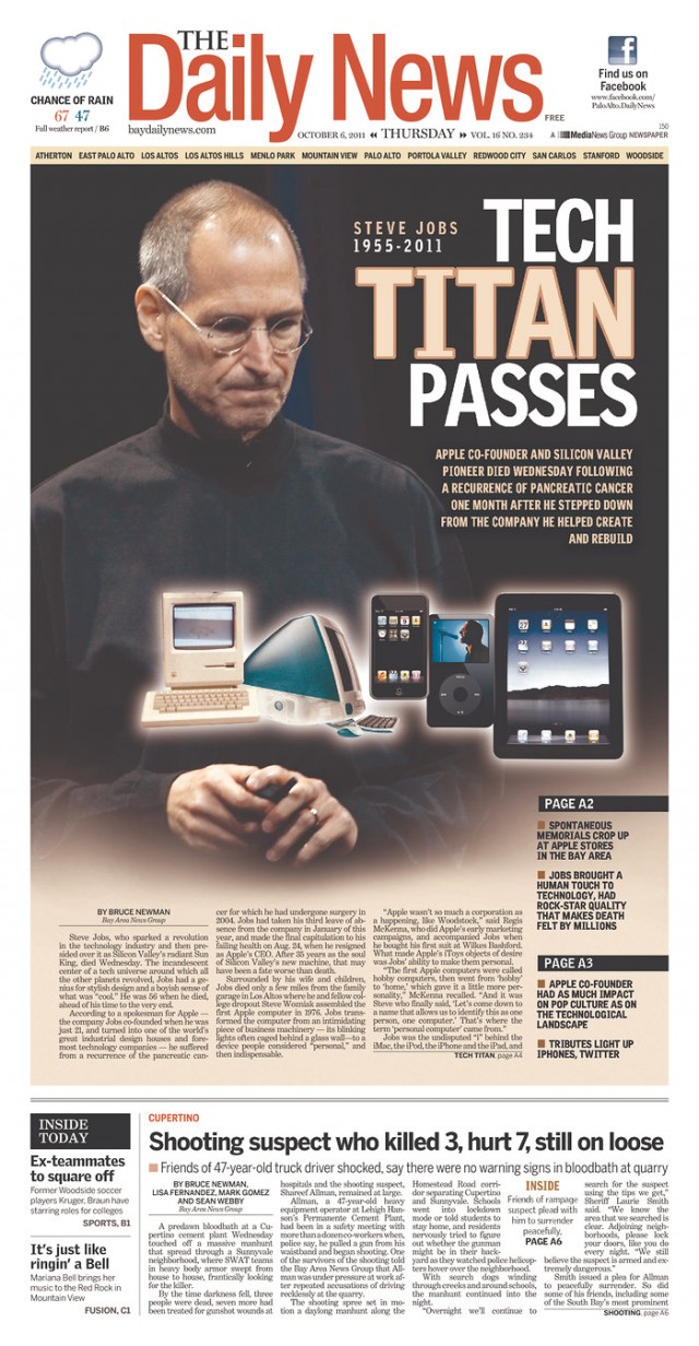 Over 100 Newspaper Front Pages Around The World Mourn Steve Jobs [Gallery]