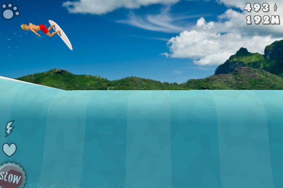 Like any endless runner, your goal is to keep going for as long as possible, while simultaneously notching up the highest score you can. In your path are various power-ups — in this case including one that turns the weather temporarily stormy, therefore increasing the size of your wave —as well as an array of obstacles to negotiate. These are mainly made up of buoys and menacing shark fins, but the real threat is the constantly advancing wall of water breaking behind you. Move too slowly and you’ll get swallowed up — leading to the inevitable “Wipe Out” screen. Move fast enough and, over time, you’ll be able to customize your character and complete the various stages the game has to offer.