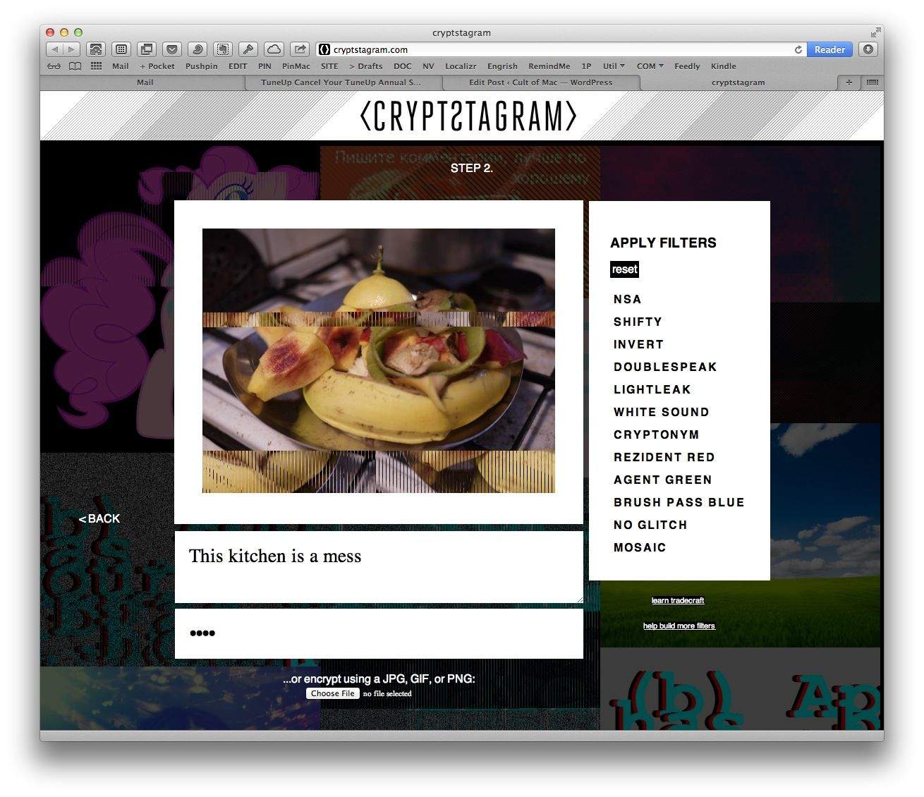 Crypstagram is a neat service for encrypting messages inside your photos. And as an added bonus it also ruins those photos along the way by adding glitches to them. You probably won’t want to actually use it for good (or evil) though, as the images you use are posted right there on the site in a gorgeous glitchy gallery.