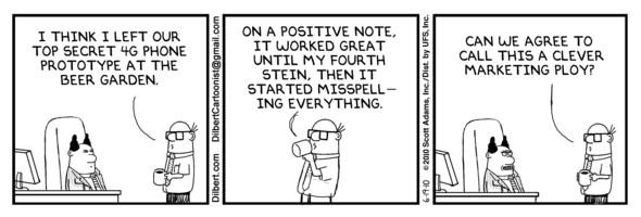 Scott Adams, the evil henchman behind the Dilbert Comic Strip, posted two comics about the drunken misplacement of the iPhone Prototype today on his blog. What’s cool is that these strips will never reach the funny pages and are exclusive to Adams’ blog. Thanks for sharing, Scott.
