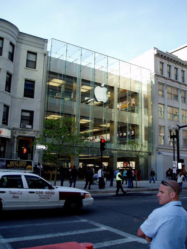Here’s the striking glass facade of Apple’s new megastore on Boston’s Boylston Street. The store opens later today (See IFOApplestore’s coverage of the overnight campout), but is being criticised for not blending with surrounding buildings.