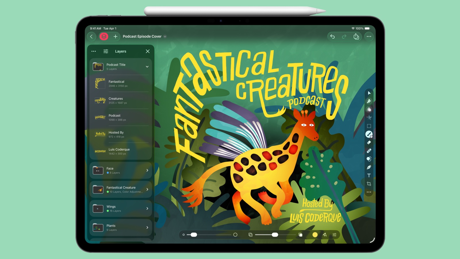 Full Apple Pencil support further enhances the experience, giving digital artists a natural painting workflow with a range of pressure-sensitive brushes.