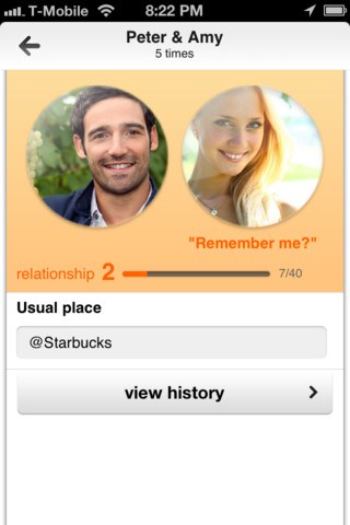 You can do this with Foursquare or other geo-location apps, but if you’re dealing with suspicious minds perhaps the breathless, punctuation-challenged name of the app itself helps. (“No we reallymet, see?”)
