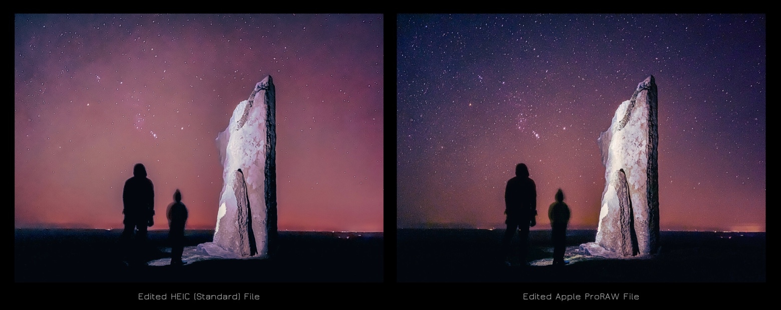 A post on Mann’s blog uses examples to show the real-world benefits of the new image format. He took the picture above in HEIC (the standard iPhone image format) and ProRAW, with otherwise identical settings. “You can see far more stars in the ProRAW image because they haven’t been erased by noise reduction algorithms,” notes the photographer.