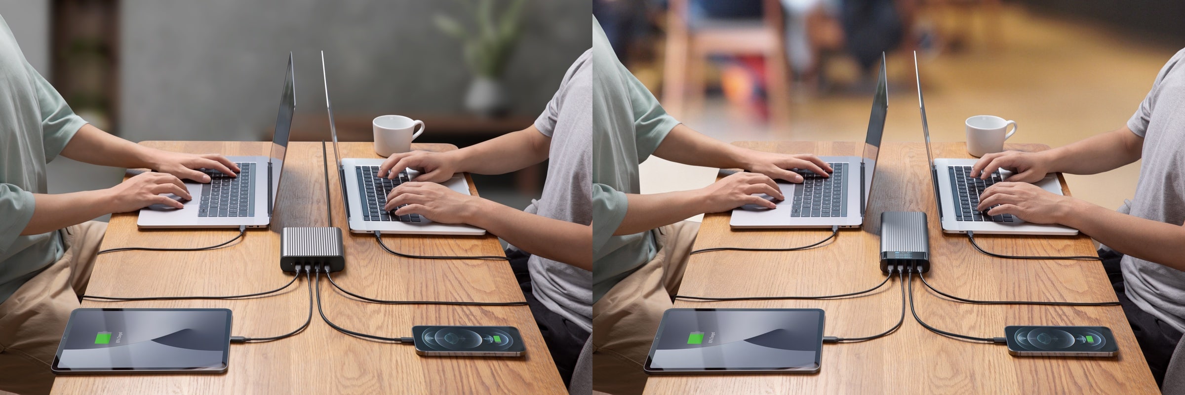 Hyper’s new desktop charger has four USB-C ports, each of which can put out 100W – though not at the same time. Two can be used to output 100W each, or all four can supply 60W each.