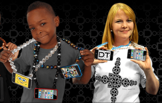 Desmond D. Dixon designed, engineered and models (that’s him in the pic above) these iPad and iPod chains. The iPod chains will go for $25, the iPad chains $49 when they go on sale in fall 2011.