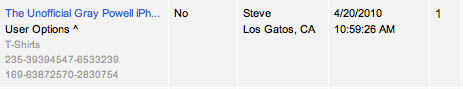 Hate to be a bore, but I am the creator of the “original” Gray Powell iPhone t-shirt (if you can call any shirt that uses the “all I got was this lousy ____” motif original). I have been selling them on Zazzle.com since 4/19. This was the very first time I’ve come up with a crappy opportunistic idea and managed to get it out in the wild before anyone else. For this underachievement, my mom is quite proud. But with any minor success (and I do mean minor, to the tune of exactly 18 shirts sold), there will be knockoffs.
