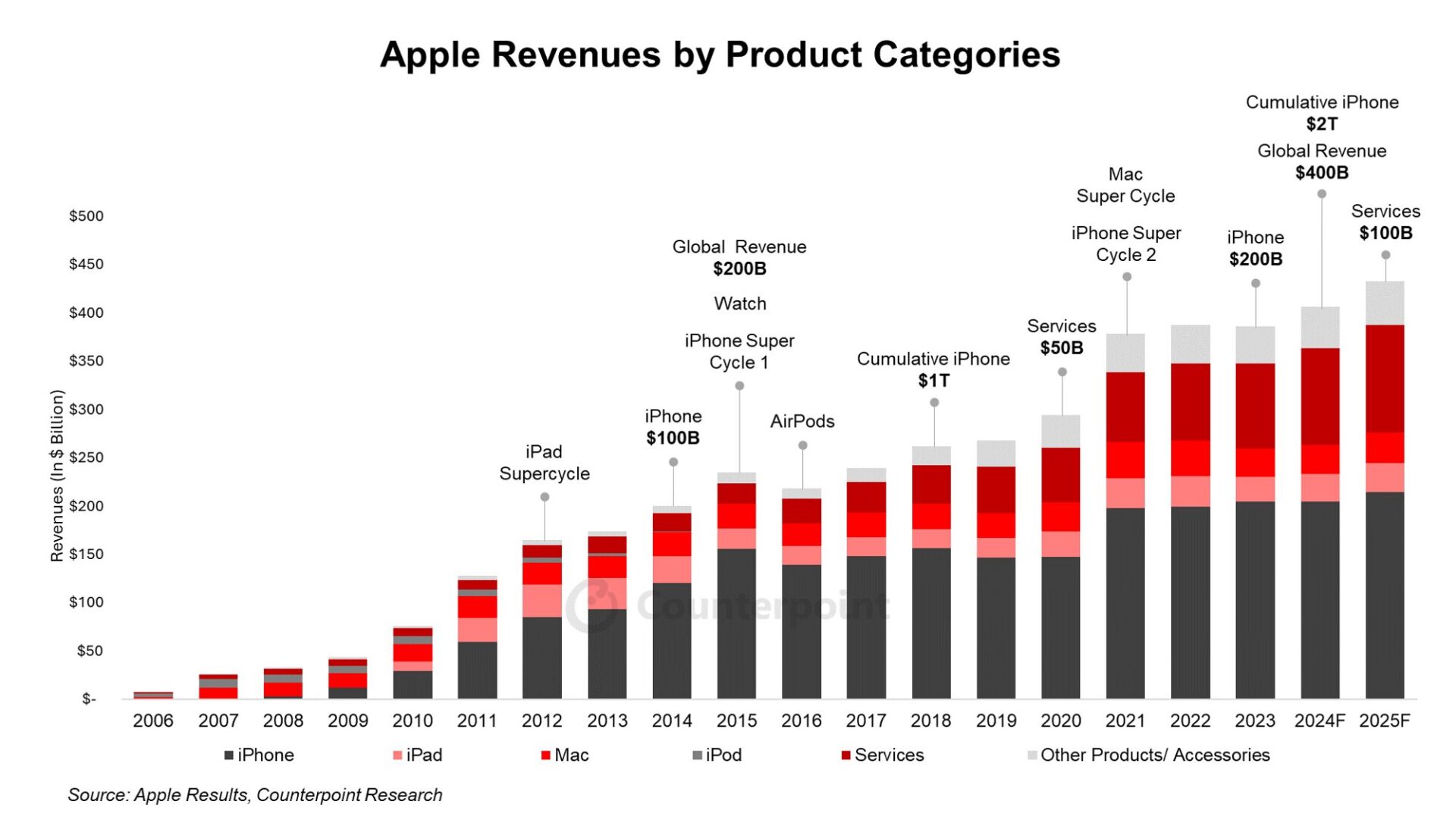 CounterPoint projects the upward trend in hardware sales to continue into 2025. Simultaneously, Apple’s services revenue remains on track to reach unprecedented levels. Estimates suggest it will surpass the $100 billion mark in 2025, for the first time.