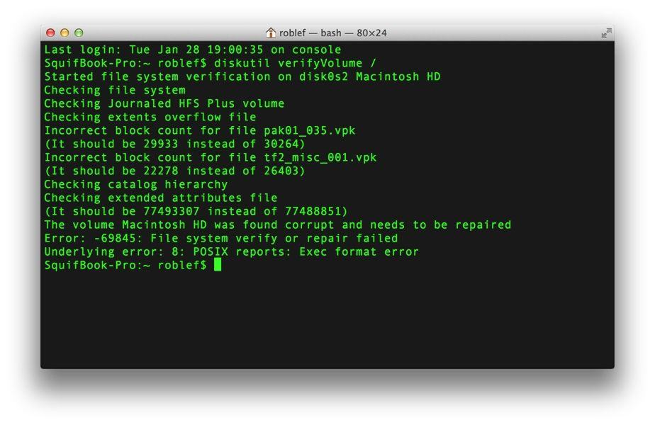 If, however, you want to dig in a bit deeper, or you’re already running Terminal a lot and don’t want to launch a separate app, you can use the following commands to both verify (check for problems) and repair any problems that you might find when verifying.