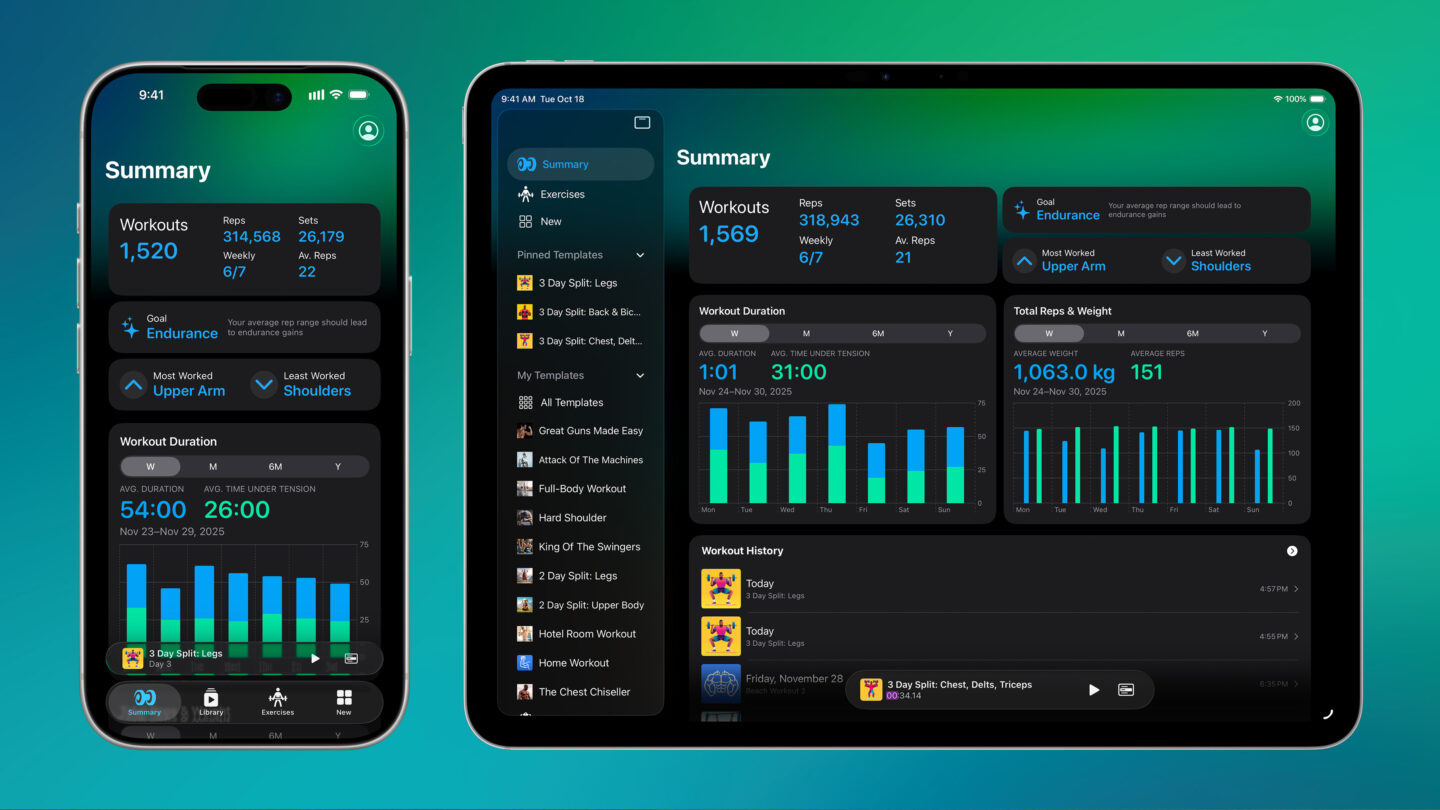 That’s the gap I designed Reps & Sets 26 to fill. You can plan detailed workout templates on iPhone or iPad, then log your session seamlessly on Apple Watch, iPhone or iPad during your workout. Check off sets as you complete them. And when you’re finished, you can track your gains with beautiful, detailed charts.