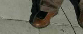 A sharp-eyed shopper told a police officer that a man had “a mirror or something” on his shoe.