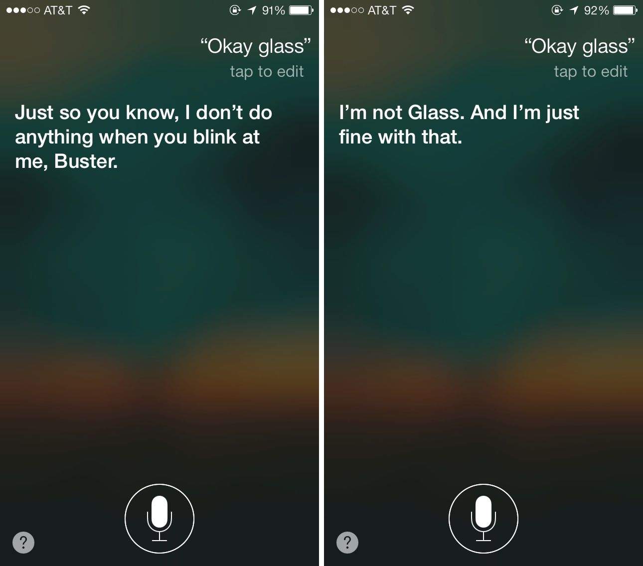 A recently discovered easter egg in Siri spits back frustrated responses when you use the Glass prompt, “Okay Glass.”