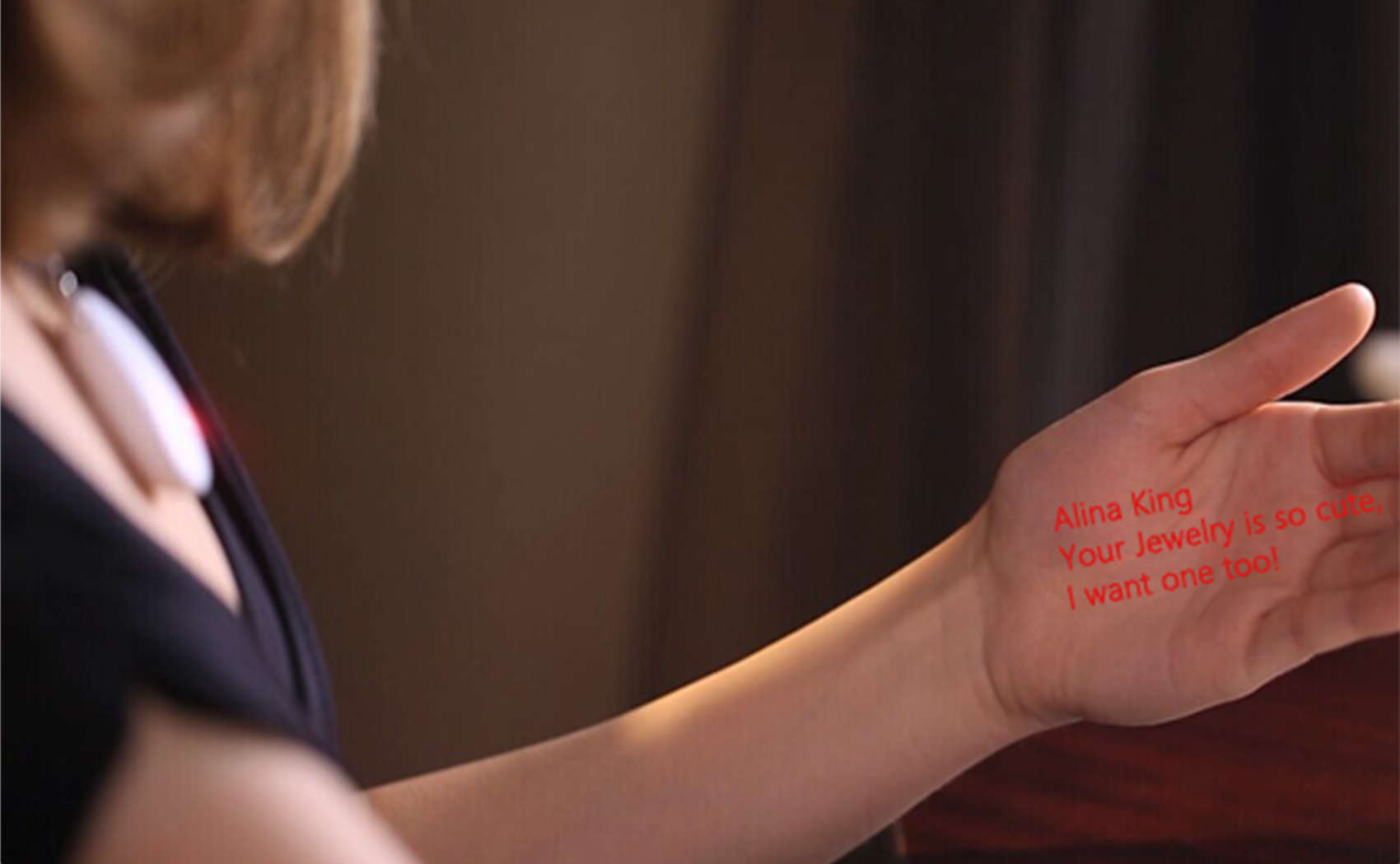 A startup company says she absolutely can with a smart necklace that looks like a stunning piece of jewelry while equipped with a tiny projector that displays texts and calls onto the hand.