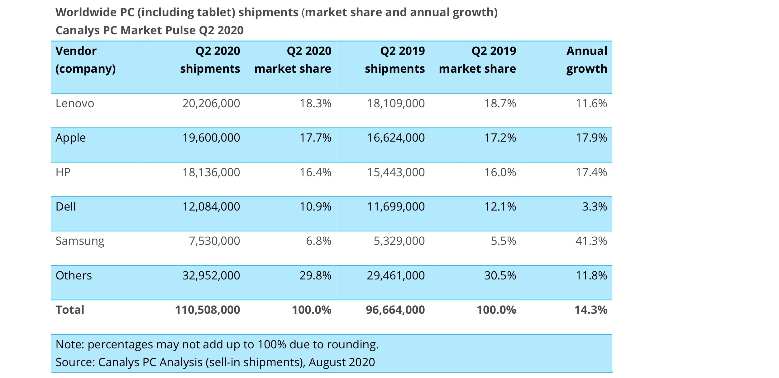 Strong sales of iPad and Mac during Q2 2020 propelled Apple closer to taking the lead in the worldwide computer market. But they weren’t quite enough to push Lenovo out of the top spot, according to a market-research firm.