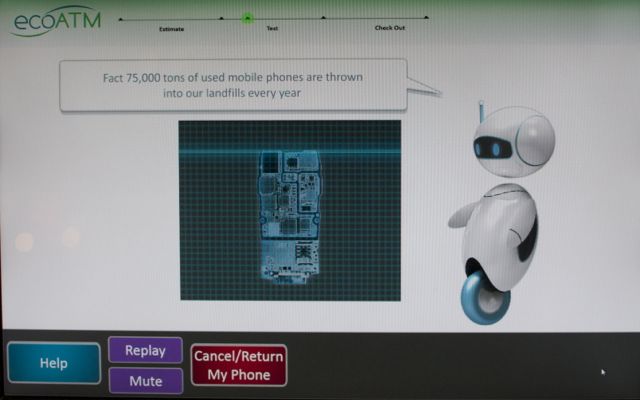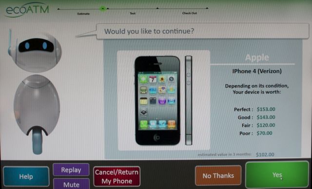 Deciding to see the value of my own iPhone 4S, I followed the ecoATM’s instructions, which were all clearly laid out on a built-in display featuring a friendly EVE-like robot, who walks you through the process.