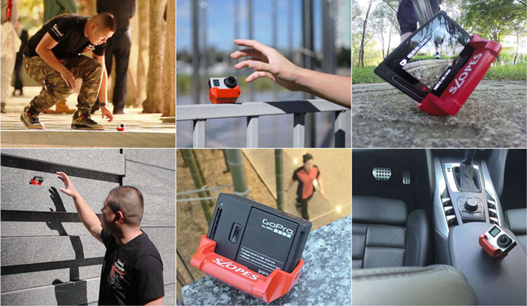 Photographer Ruogo Zhou has designed a hunk of plastic that cradles the GoPro and provides it 20 different angles for shooting. It’s a small polyhedron support that can fit in tiny spaces and it goes by the name SLOPES.