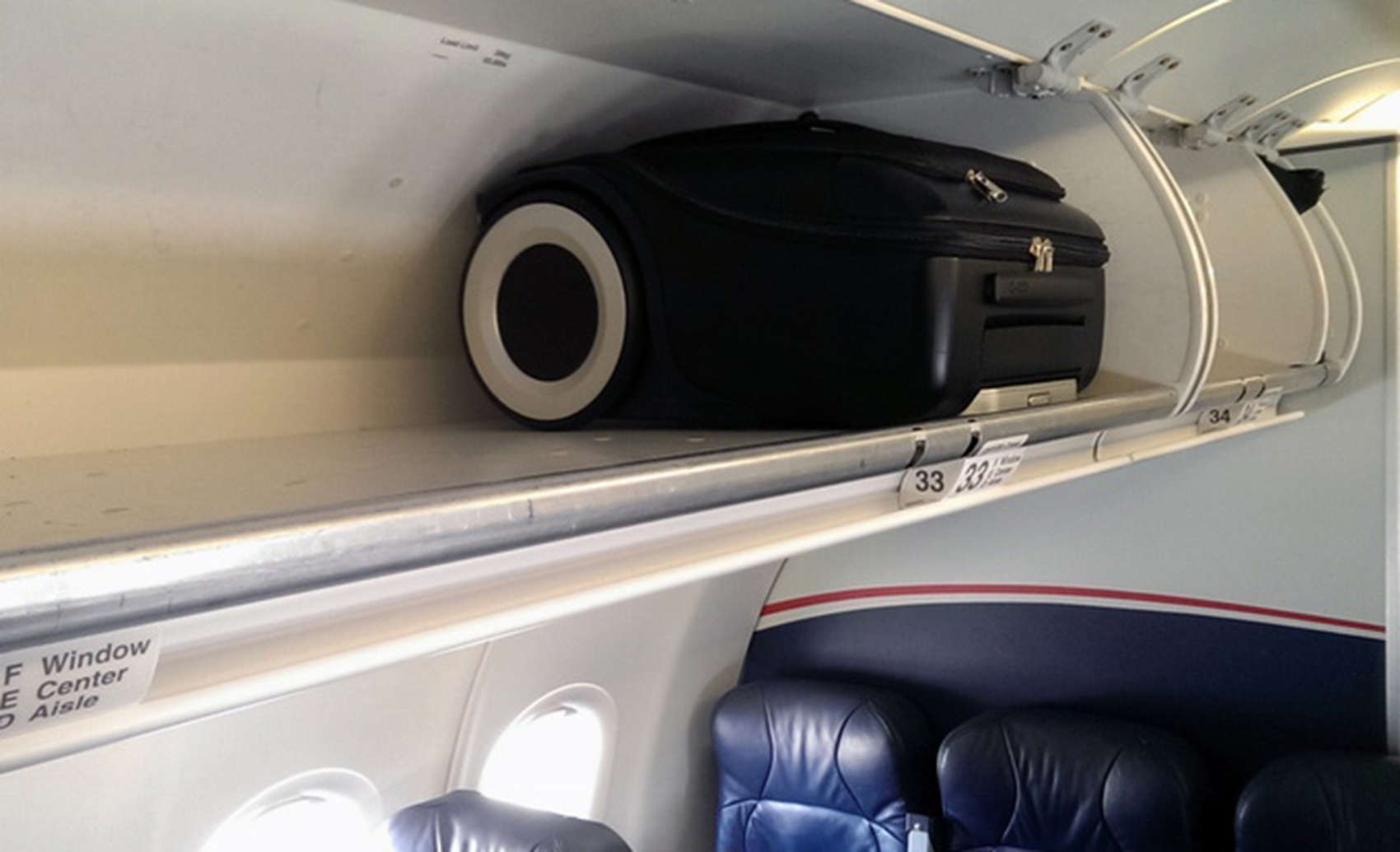 This carry-on is stunning to look at with a design that would compliment the motorcycle from the movie Tron. Two large diameter axle-less wheels make the bag feel lighter as the weight shifts over the center of the wheels, which are surprisingly thin and travel better than those tiny caster wheels.