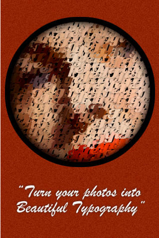 Turn your photos in to beautiful typography art and create pictures that literally say a thousand words. Paint your pictures using fonts, rather than oil and water colors, and show off unique photos that are guaranteed to impress. Type It! features support for iPad & iPhone, numerous beautiful fonts, the ability to save and email photos to your friends, and a lot more coming soon.