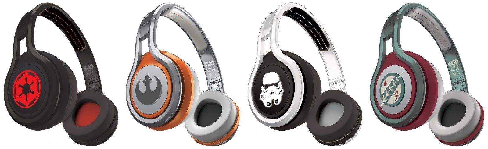 Each set boasts a Star Wars-themed logo on the ear cups (see below) with associated fan service pack-ins like stickers and a poster.