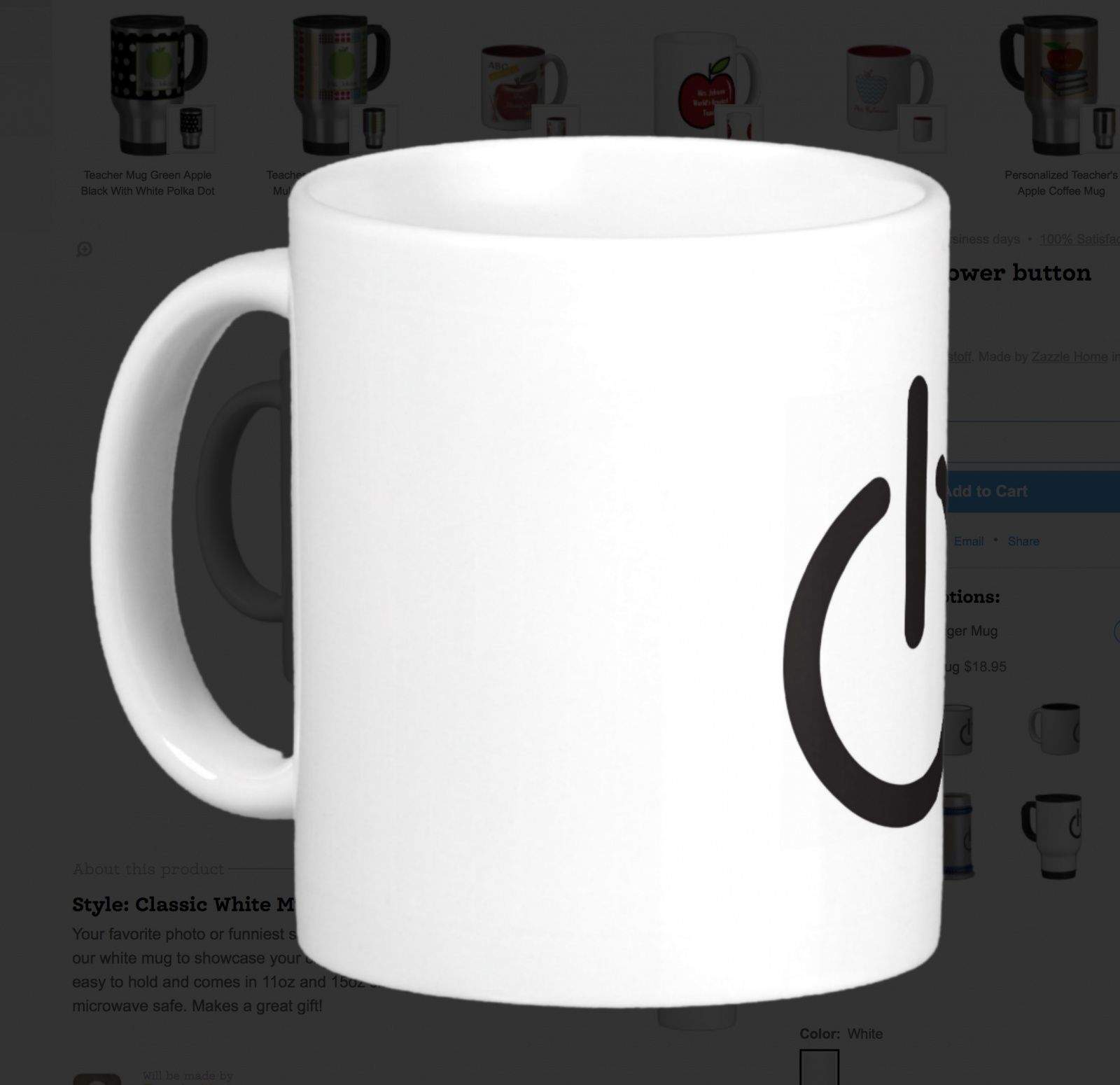 Wake the fuck up with a cup of joe in a mug featuring the Mac power button!