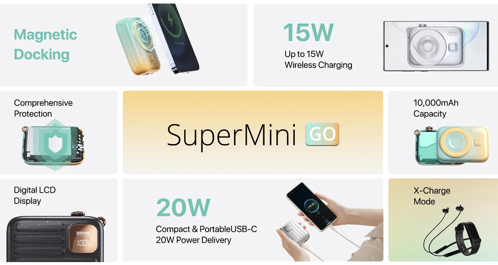 Zendure’s SuperMini Go battery pack has MagSafe- and Qi-charging, along with USB-C and USB-A ports making it possible to charge pretty much anything. It can simultaneous charge up to three devices.