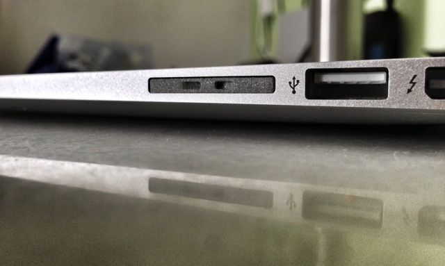 Which is why you should buy your husband/lover a MiniDrive, a tiny sliver of plastic that acts like the iPhone’s SIM card tray, only instead of a SIM it carries a microSD card. And instead of working with an iPhone it slides into the redundant SD card slot on the side of a MacBook Air.