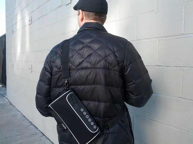 The Bluetooth speaker comes in a trendy, unobtrusive black shoulder bag for transporting to park, pool or a party. It not only looks good but sounds nice as well.