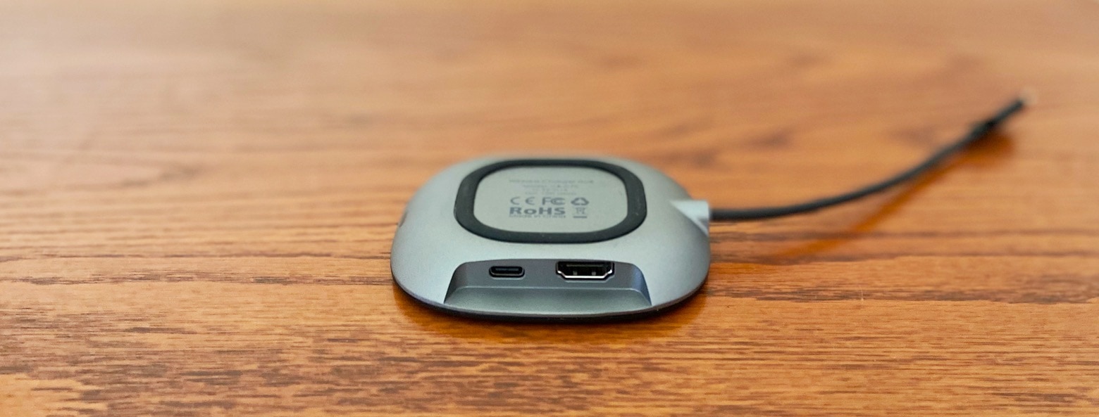 Don’t get confused because there are two ways to power the Aukey CB-C70. If the accessory is only plugged into your Mac with its built-in cable, the computer will power the ports but not the wireless phone charger. Only if a cable with an external power supply is connected to the CB-C70’s USB-C port will power go to the wireless phone charger.